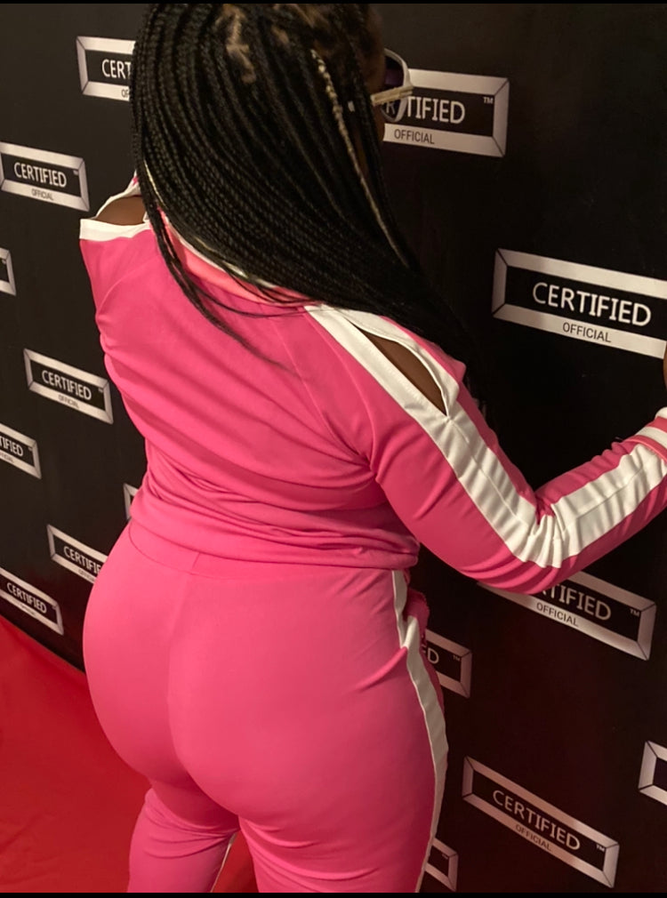Designer, 2pc. Jacket w/ shoulder cut-outs & Fashionable Leggings w/ zipper closures.